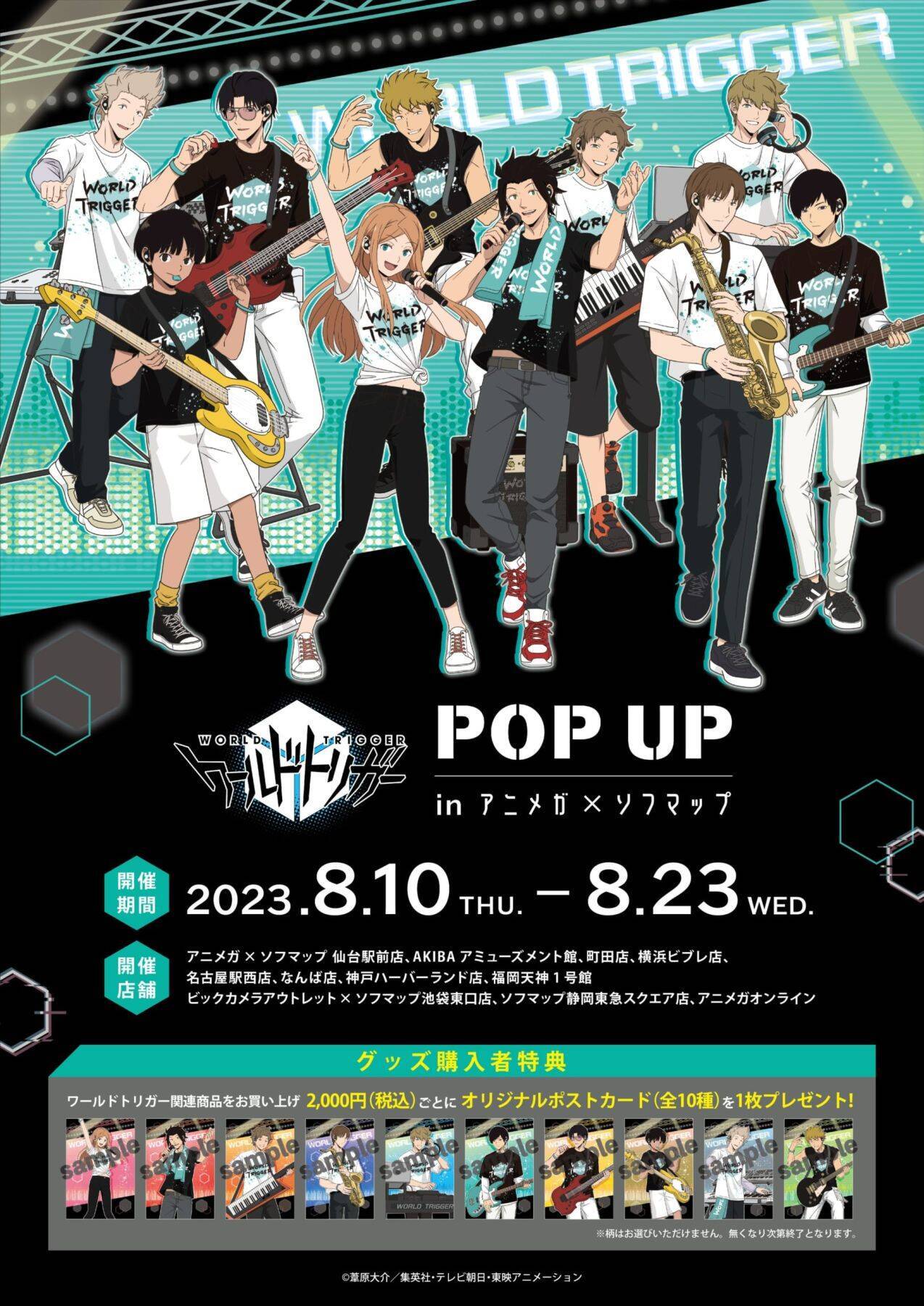 ワールドトリガー関連商品を税込2,000円(税込)購入ごとに、ランダムで1枚「オリジナルポストカード(全10種)」がプレゼントされます。