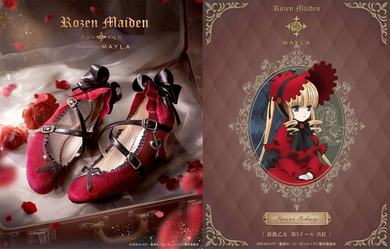 『ローゼンメイデン』と「MAYLA」のコラボ第2弾では、真紅・水銀燈・雪華綺晶がモチーフのパンプスが登場。