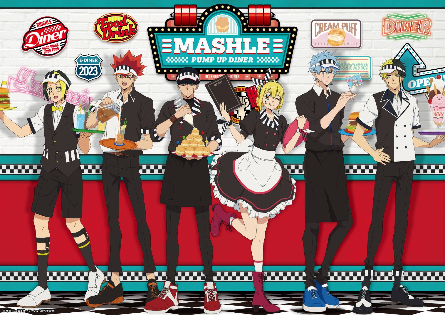 本ポップアップショップには、ダイナー衣装のマッシュ・フィン・ランス・ドット・レモン・レインの6人が登場しました。コラボイラストを使用したグッズなどが販売されます。