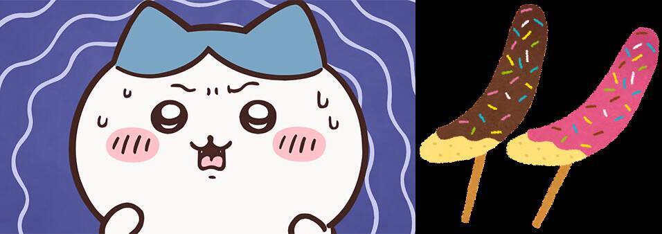 話題になっているのはお祭りの屋台で『ちいかわ』のキャラクターであるハチワレを模したチョコバナナを見つけたというツイート。