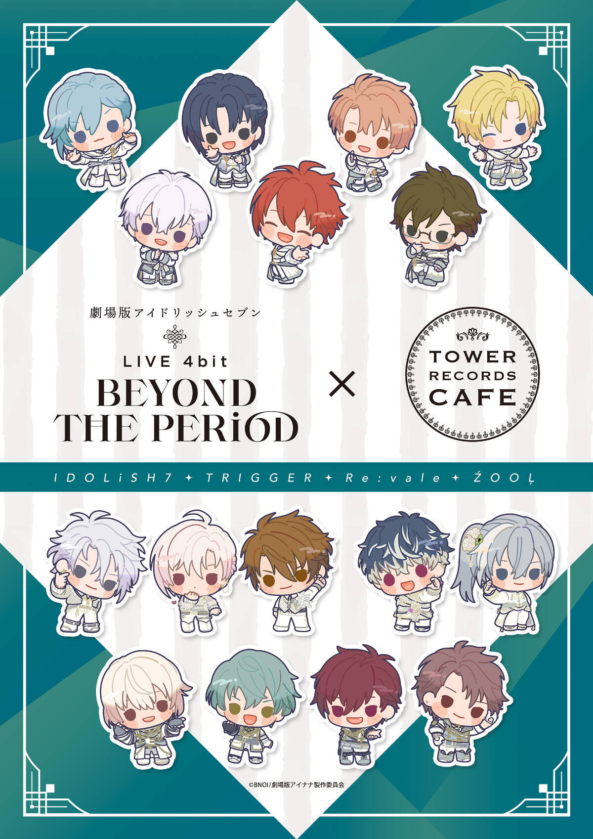 『ムビナナ』のBlu-ray BOX & DVD BOX発売を記念し、東名阪の3都市5店舗の「TOWER RECORDS CAFE」にてコラボカフェが開催されます。IDOLiSH7・TRIGGER・Re:vale・ŹOOĻの4グループをイメージしたフード・スイーツと、各メンバーをイメージしたコラボドリンクが登場。