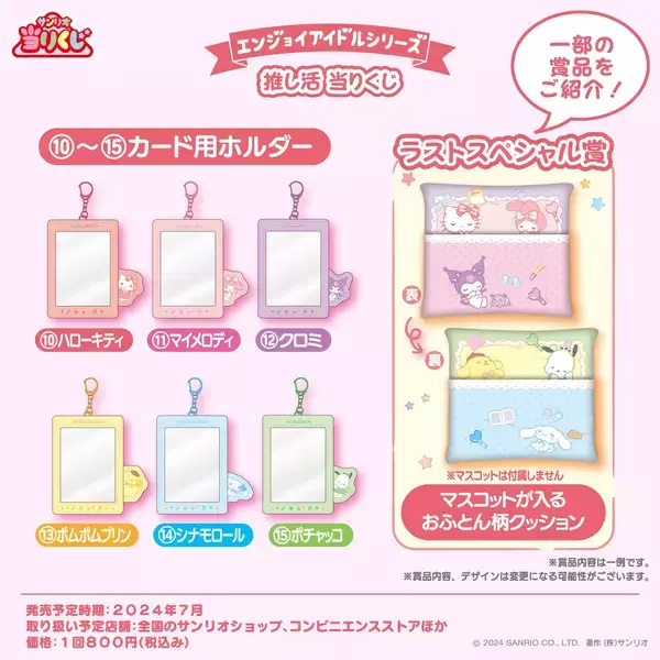全ての画像を見る推しを楽しく応援するためのグッズ「サンリオエンジョイアイドルシリーズ」の当りくじが、2024年7月に発売決定しました!「推し活」がさらに楽しくなるような、スペシャルな賞品がラインナップ...