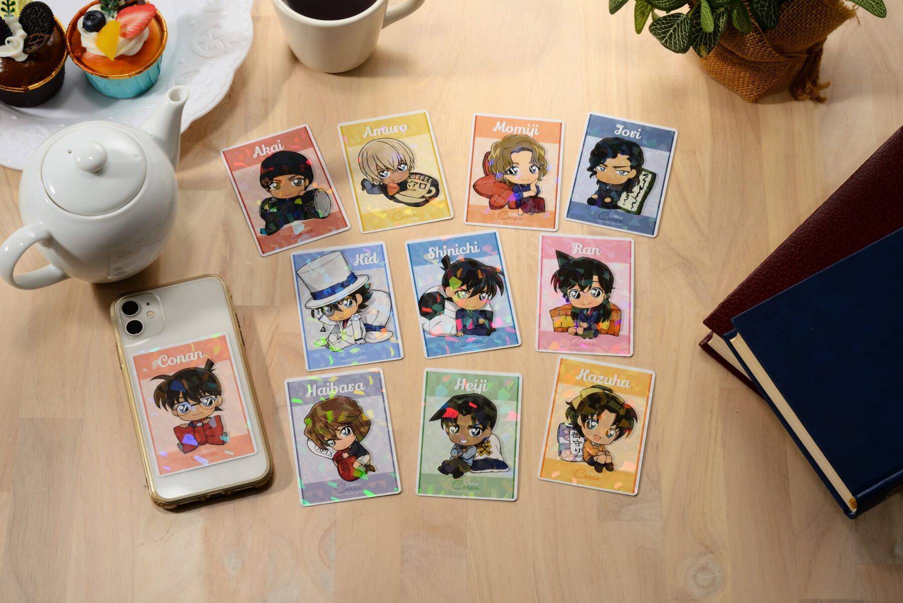 描き下ろしイラストにはクッションとリラックスする江戸川コナン・灰原哀・服部平次・遠山和葉・怪盗キッド・工藤新一・毛利蘭・赤井秀一・安室透・大岡紅葉・伊織無我の計11人が描かれました。