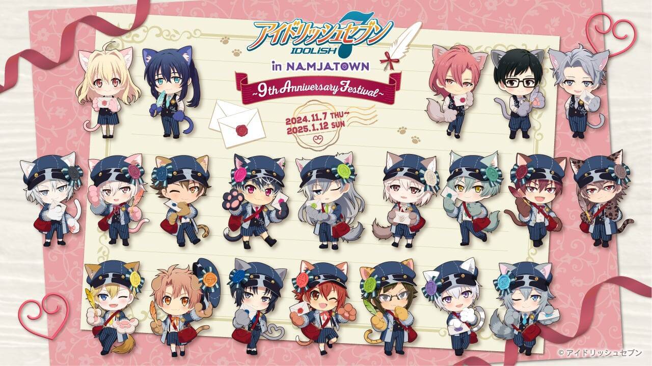 本イベントには『アイナナ』に登場するアイドルグループ・IDOLiSH7・TRIGGER・Re:vale・ŹOOĻと、マネージャー5人の総勢21人が登場。衣装のテーマはねこ耳と「郵便屋さん」となっており、手紙や羽ペンを持ったアイドル達が超キュートですね。