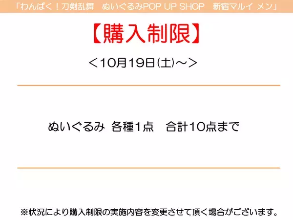「わんぱく!刀剣乱舞」ぬいぐるみポップアップショップ 購入制限