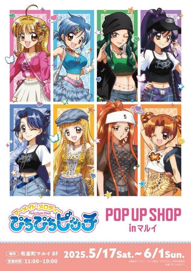 海の世界と人間世界を行き来する人魚たちの物語『ぴちぴちピッチ』のPOP UP SHOPがマルイに登場!今回のイベントでは「Y2Kファッション」をテーマにした新規描き下ろしイラストが公開され、ルチア・波音・リナたちマーメイドプリンセスが集結しています。