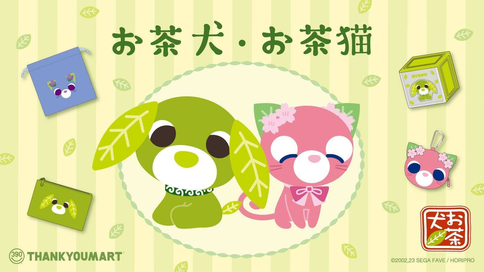 緑茶犬「リョク」とさくら茶猫「サクラ」がサンキューマートに帰ってきました!2002年のデビュー以来、「ほっと一息つける癒しのキャラクター」として愛され続けるお茶犬・お茶猫のコラボ雑貨が、2026年4月下旬よりサンキューマート各店舗で発売されます。