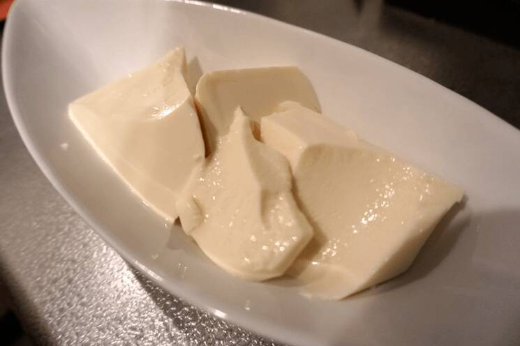 盛り付け用の皿に豆腐を適当な大きさにしながら盛る。