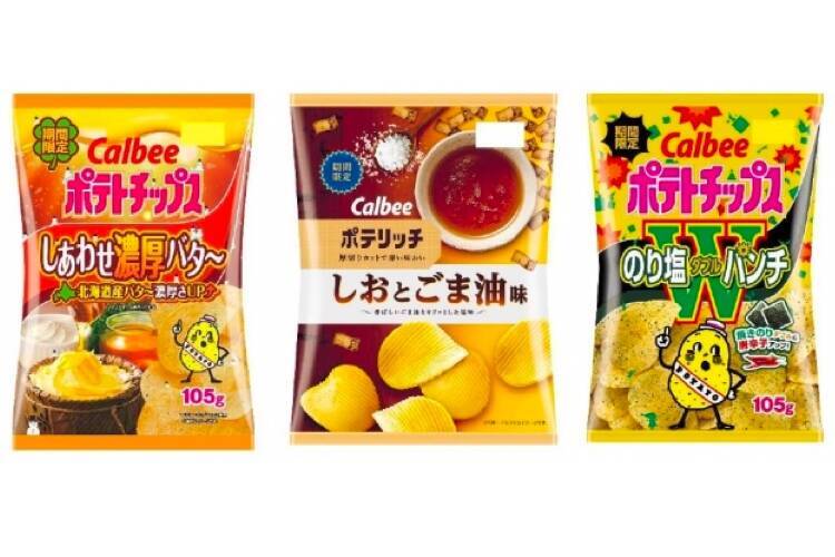 カルビーから、「ポテトチップス しあわせ濃厚バタ~」「ポテリッチ しおとごま油味」「ポテトチップス のり塩ダブルパンチ」が、2019年12月2日(月)より、全国のコンビニエンスストア限定で順次、発売になります。