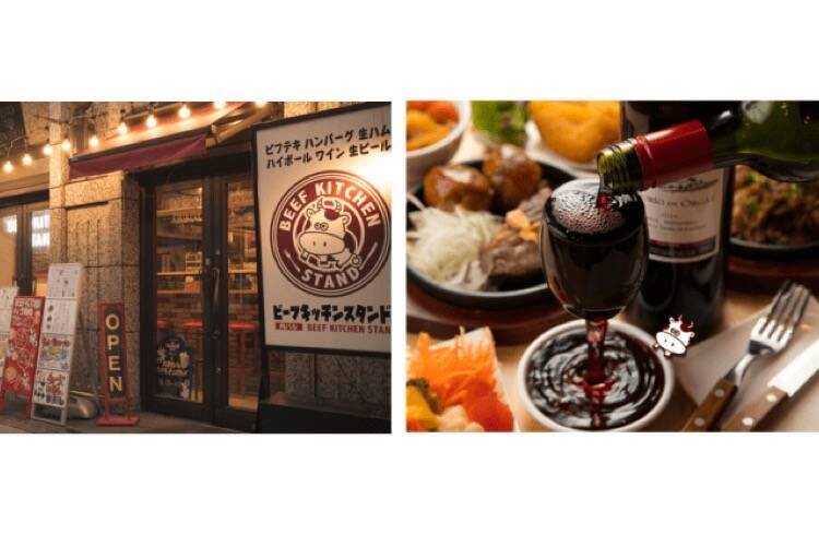 「ステーキをつまみにお酒を呑む」という文化を発信しているちょい呑みステーキバルであり、290円の名物ビフテキや牛ハツのレアローストなどの肉料理と、60種類以上の多彩なラインナップの小皿料理を取り揃えているという「ビーフキッチンスタンド」。