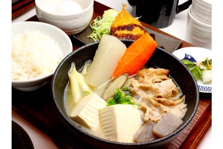 名物「炙り豚汁定食」をはじめとするランチの料理や、フレッシュフルーツをオーダー毎に生搾りする「食べるフルーツサワー」などのこだわりのドリンクが楽しめるのが特徴。