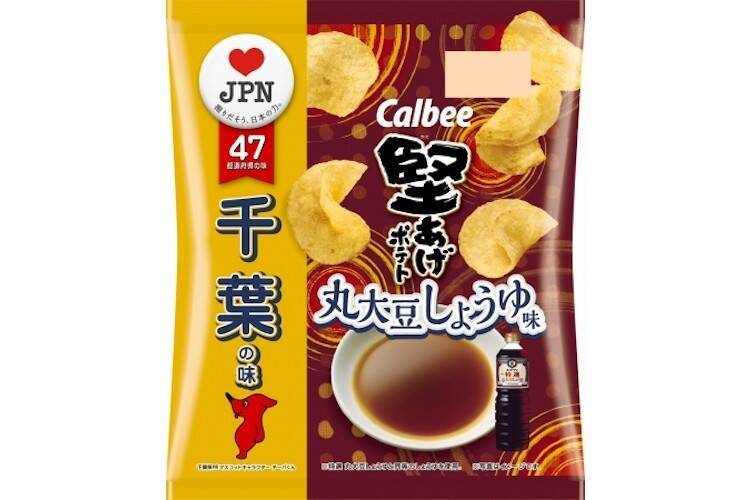 カルビー株式会社から、千葉県で醸造されたキッコーマンの「丸大豆しょうゆ」を使用した『堅あげポテト 丸大豆しょうゆ味』が数量限定・期間限定で2020年7月13日(月)より、千葉・茨城・栃木・群馬・埼玉・東京・神奈川・山梨(8都県)で発売中です。