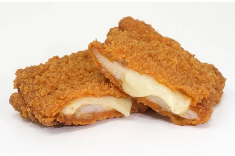 タッカルビソース味の鶏肉と衣の間に、スライスしたチーズが丁寧に挟みこまれているという同商品。濃厚なタッカルビソースはコチュジャンの辛みと、隠し味として味噌が加えられ日本人好みの甘辛さが実現されているのだそう。