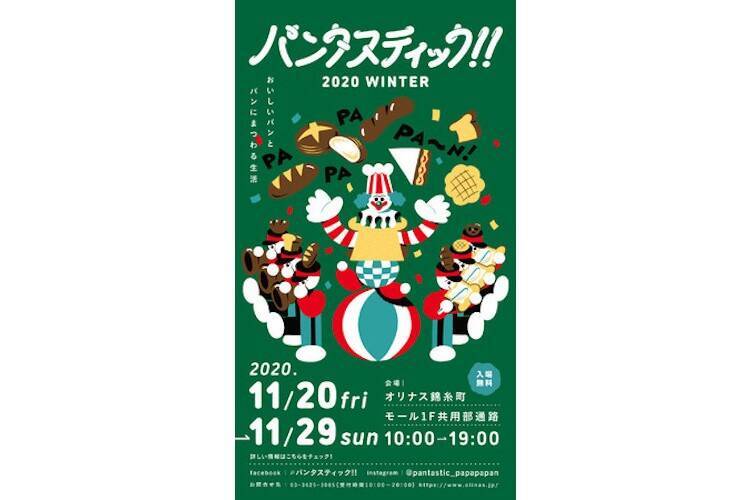 錦糸町のショッピングモール「オリナス」から2020年11月20日(金)~11月29日(日)までの期間、 “日本一長い”パンイベント「パンタスティック!!2020 WINTER@オリナス錦糸町」が開催されます。