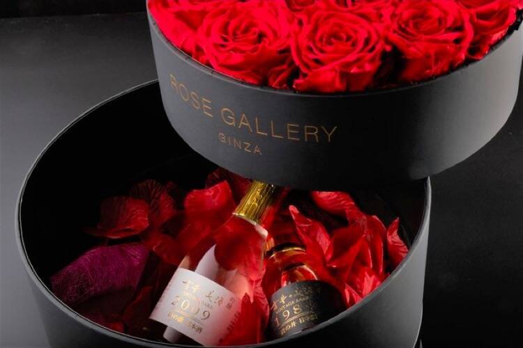 「ローズギャラリー銀座×古昔の美酒」は、日本酒・焼酎・泡盛・梅酒の優れた国産長期熟成古酒を厳選したプレミアムブランド「古昔の美酒(いにしえのびしゅ)」と、JFGが提供する日本初の高級バラ専門ブランド「ROSE GALLERY」をセットにしたクリスマス限定商品。