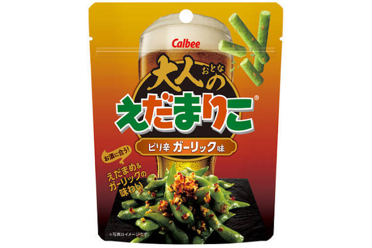 カルビー株式会社の枝豆を主原料に使用し「じゃがりこ」の製法で“カリッ、サクサク”の食感が楽しめる「えだまりこ」が、お酒に合うおつまみ向け新シリーズ「大人のえだまりこ」にリニューアル。シリーズ第一弾として、『大人のえだまりこ ピリ辛ガーリック味』が2021年4月12日(月)より、コンビニエンスストア先行で期間限定発売で登場です。