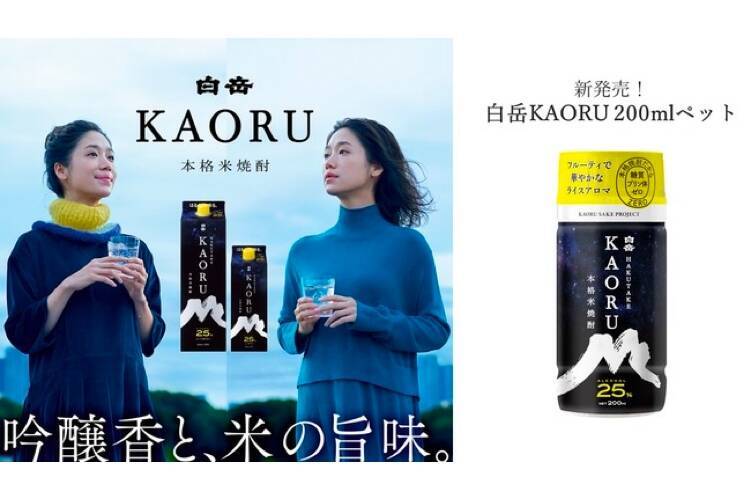 家庭用としてはもちろん、季節ごとの行楽やホームパーティをはじめとしたイベントでも、気軽に楽しむ事が出来る少容量サイズとなっているのが特徴。1800mlと900mlの2サイズだった「白岳KAORU」を「色々な場面で楽しみたい」「お試しで飲めるサイズがほしい」というお客さんの要望を受け開発した一品になっています。
