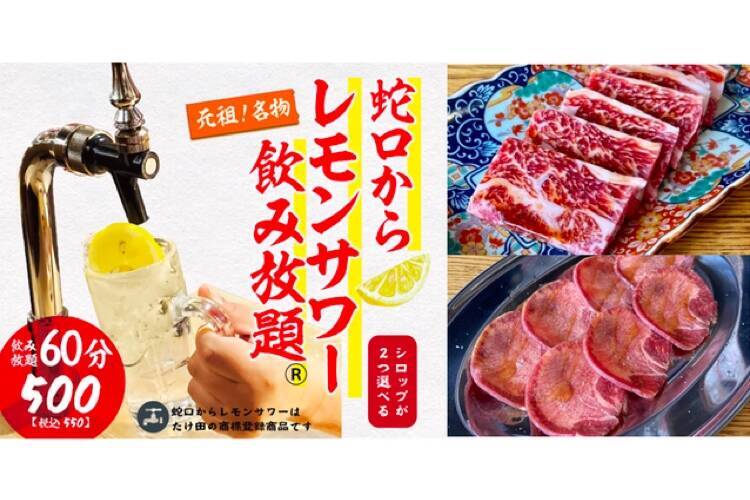 高いコストパフォーマンスの「焼肉・ホルモンメニュー」と、エンタメ感満載の各テーブルで注げる「蛇口レモンサワー®」を楽しんでみるのはいかがでしょうか?