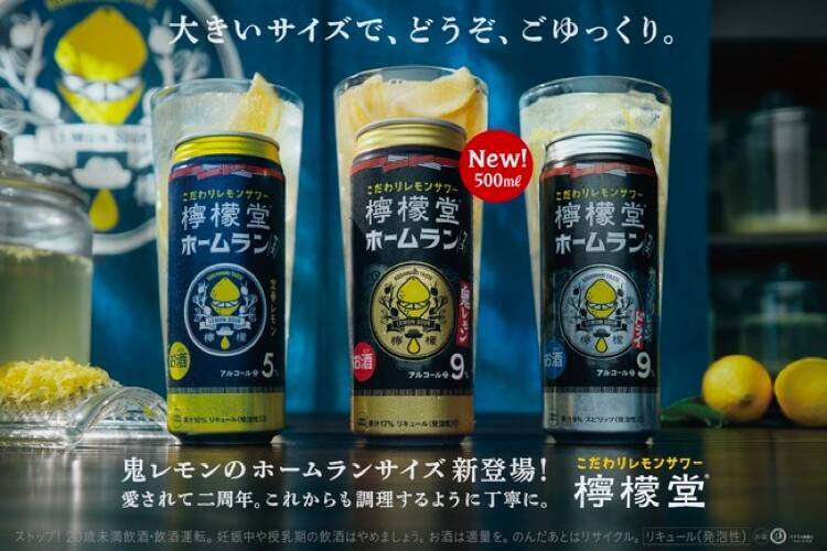 500ml缶の"ホームランサイズ"で、レモンの果汁としっかりした飲みごたえを、ゆったりと楽しめるのが特徴。アルコール度数9%で、果実1.5個分のレモン果汁を使用したレモンサワー「鬼レモン」をより楽しめる一品になっています。