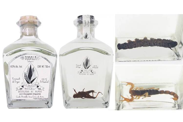 原料には、メスカルのスタンダード品種で、爽やかなスッキリとした飲み口が特徴の「エスパディン」と、メスカルの王様と言われる人気種で、香りや強い旨味が特徴の「トバラ」の、計2種類のアガベ(竜舌蘭)がラインナップ。この2種類のアガベに、17種類の食用昆虫が入った計34種類を展開されます。