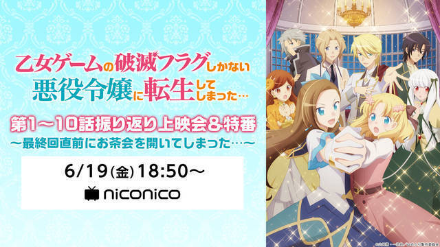 2020年4月4日(土)よりMBS、TOKYO MX、BS11、J:テレほかにて好評放送中のTVアニメ『乙女ゲームの破滅フラグしかない悪役令嬢に転生してしまった…』。この度、本作の最終回放送の前日、6月19日(金)ニコニコ生放送にて、最終回直前生放送特番~最終回直前に、お茶会を開いてしまった…~の配信が決定!
