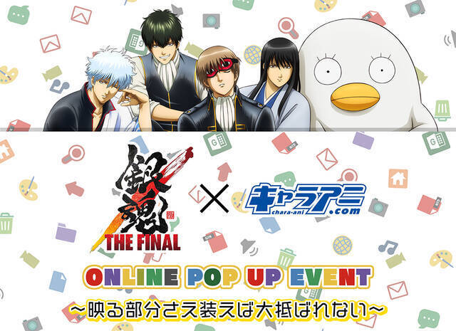 株式会社キャラアニ(以下、キャラアニ)は、運営するオンラインストア「キャラアニ.com」にて銀魂×キャラアニ.com「銀魂ONLINE POP UP EVENT~映る部分さえ装えば大抵バレない~」を開催いたします。『銀魂 THE FINAL』オンラインポップアップショップイベント