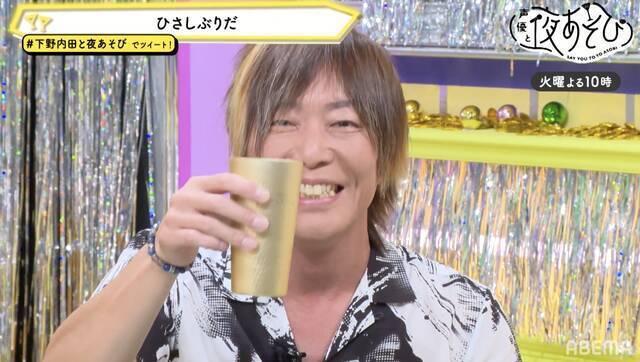 本放送にゲストで出演した谷山さんは、『声優と夜あそび 1st season』『声優と夜あそび 2nd season』でMCを務めており、久しぶりの“夜あそび”に「谷山紀章がABEMAに帰ってきたぞ~!」と挨拶。視聴者も「おかえりなさい~!」というコメントで盛り上がります。また、MCの下野さんとは、数々の作品で共演していたり、プライベートでも交流があったりと、大の仲良し。
