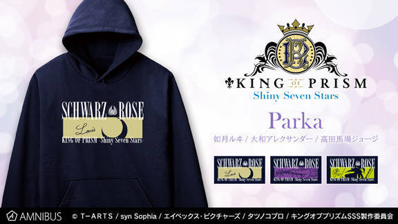 大人気アニメ『KING OF PRISM -Shiny Seven Stars-』から、シュワルツローズ所属のプリズムスタァをイメージしたパーカーが登場します♪ 如月ルヰ、大和アレクサンダー、高田馬場ジョージのモチーフをデザインしたシンプルなグッズなので、大人の日常使いにもおすすめです♪「日常でも使用できる」をコンセプトにしたオリジナルグッズを展開する通販サイト、「AMNIBUS」にて『KING OF PRISM -Shiny Seven Stars-』の商品の受注が、2月26日(水)より開されています。パーカー