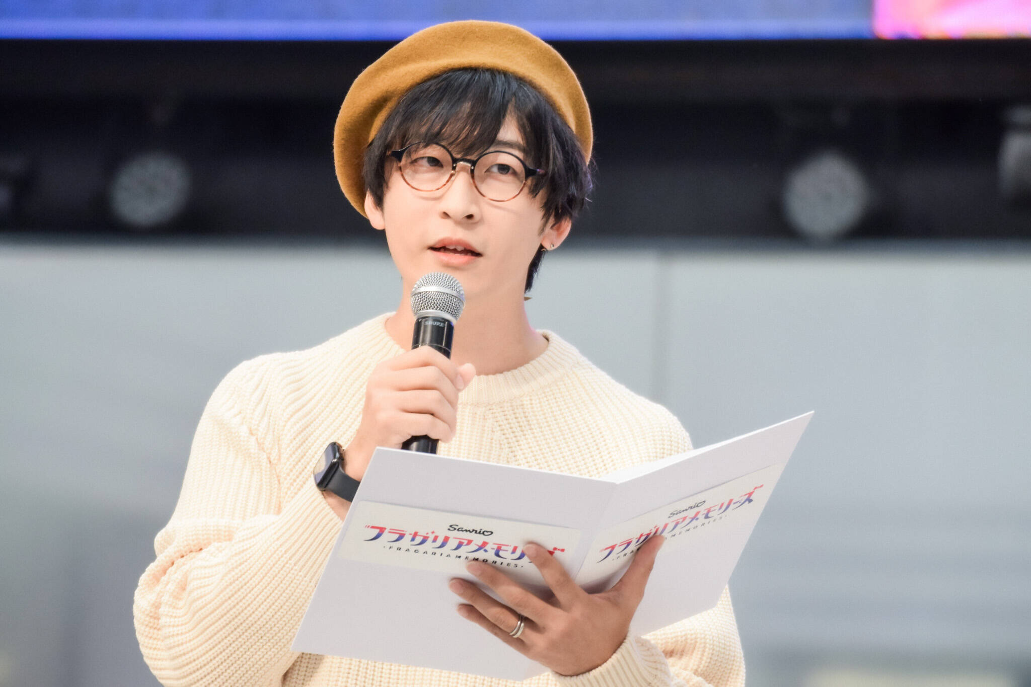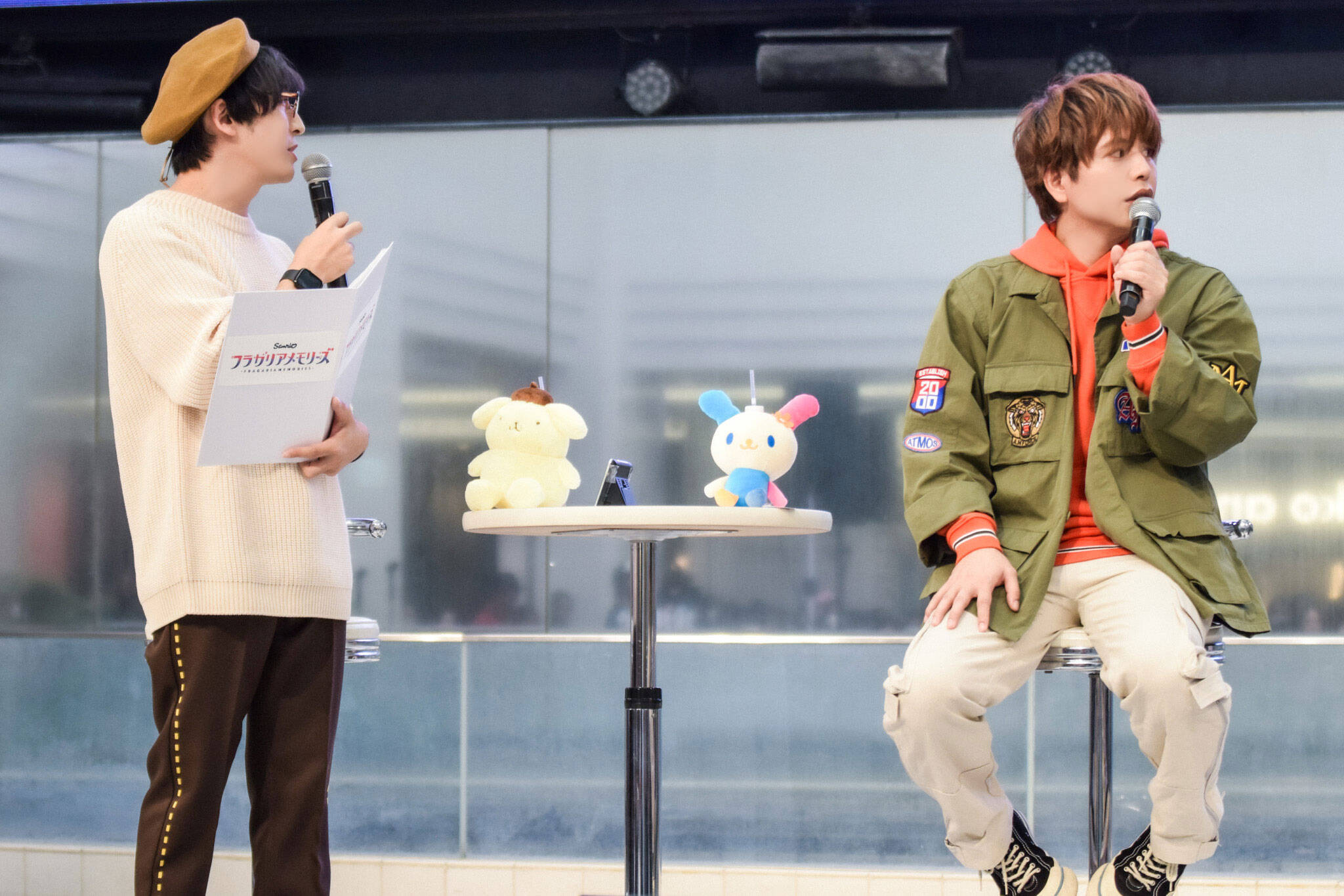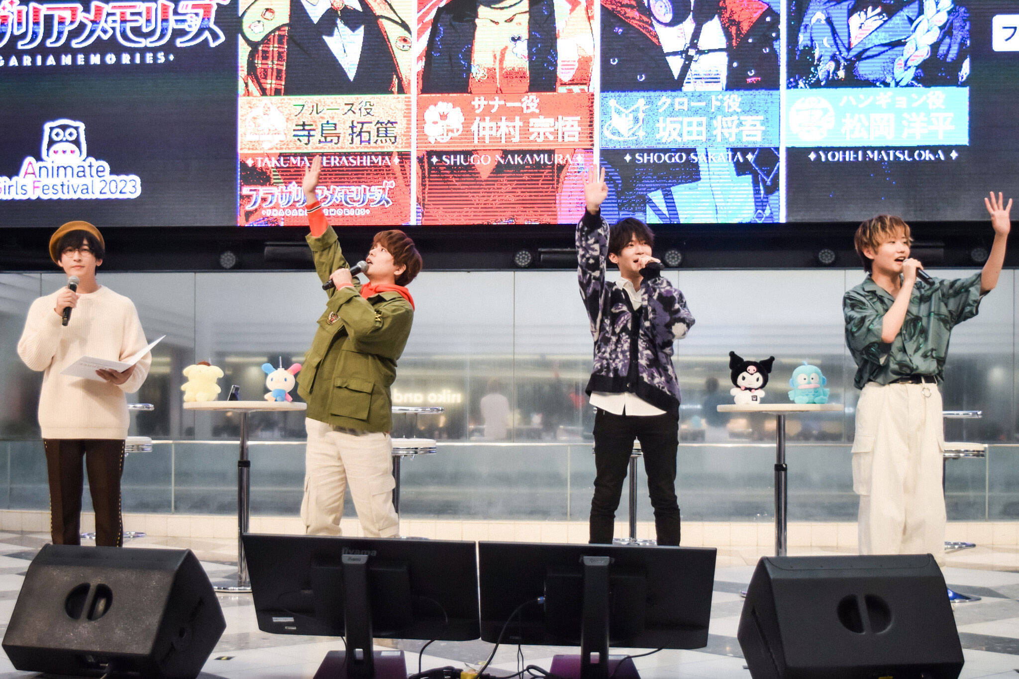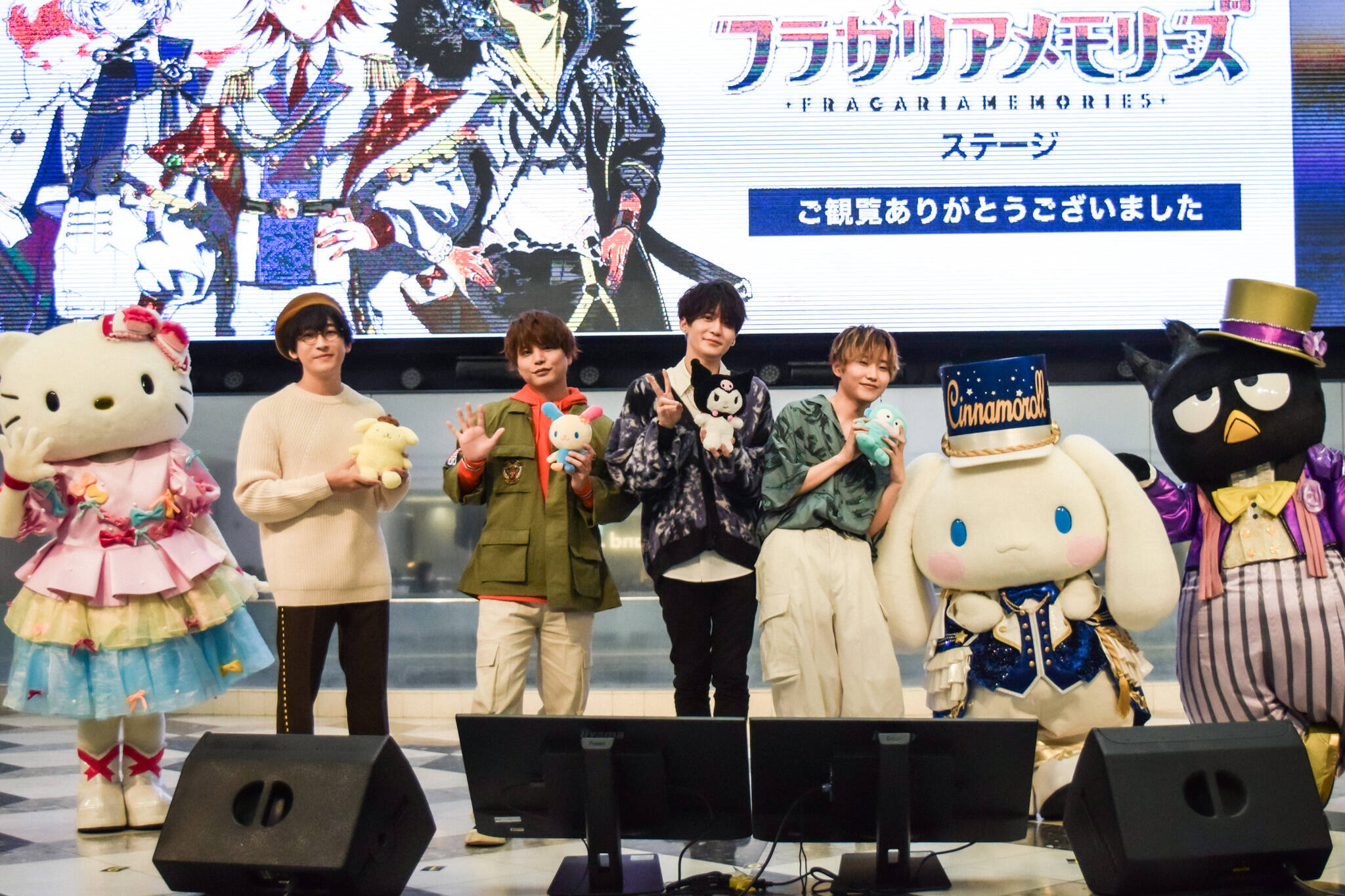 ポムポムプリンのフラガリア「プルース」役の寺島拓篤、ウサハナのフラガリア「サナー」役の仲村宗悟、クロミのフラガリア「クロード」役の坂田将吾、ハンギョドンのフラガリア「ハンギョン」役の松岡洋平のほか、ハローキティ、シナモロール、バッドばつ丸が登壇した。