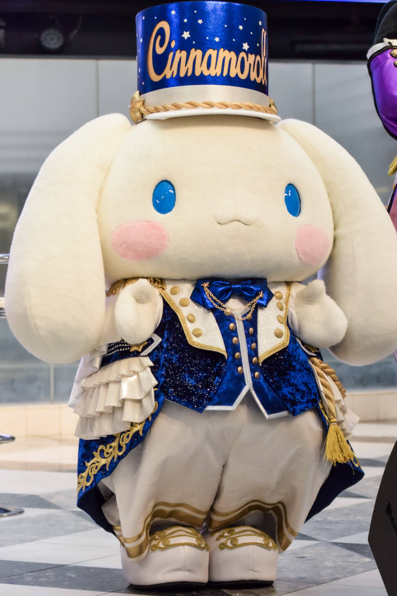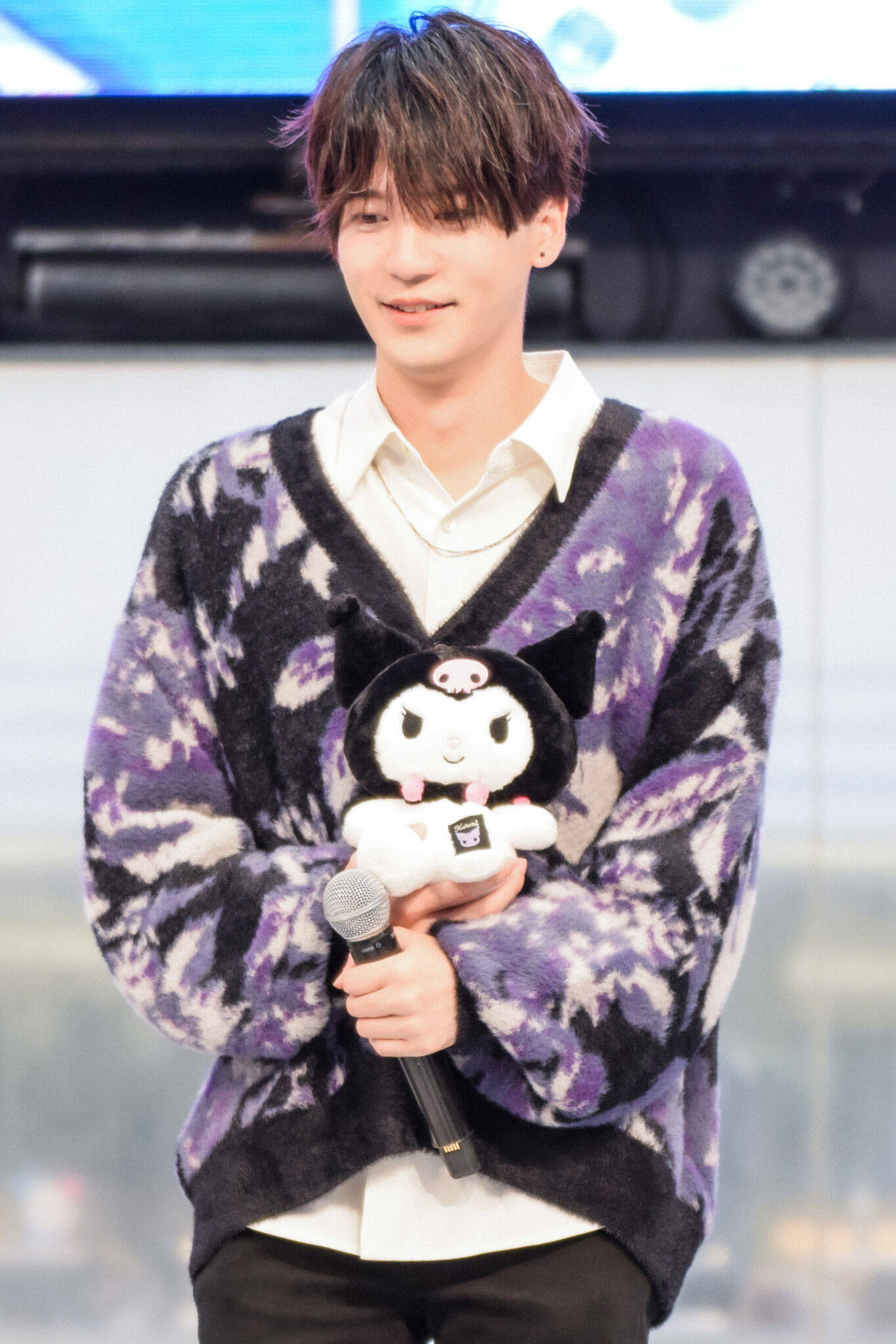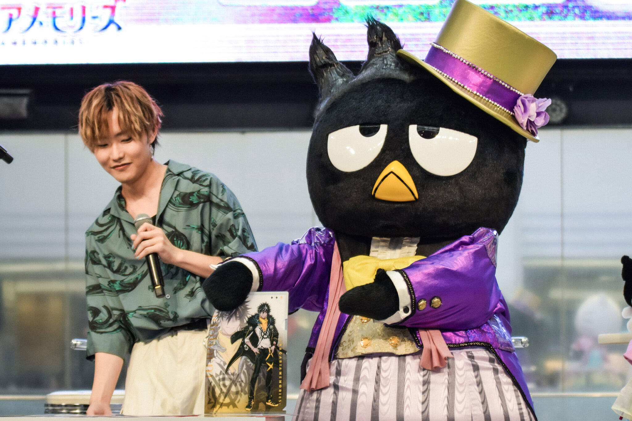 ここで、会場にスペシャルゲストが登場。「サンリオのイベントで男の人たちだけ見てるのもなと思いまして!(笑)こんな素敵な人を呼びました!」と呼びこまれたのは、ハローキティ、シナモロール、バッドばつ丸。2階、3階からステージを見守るファンへのファンサも欠かさない。