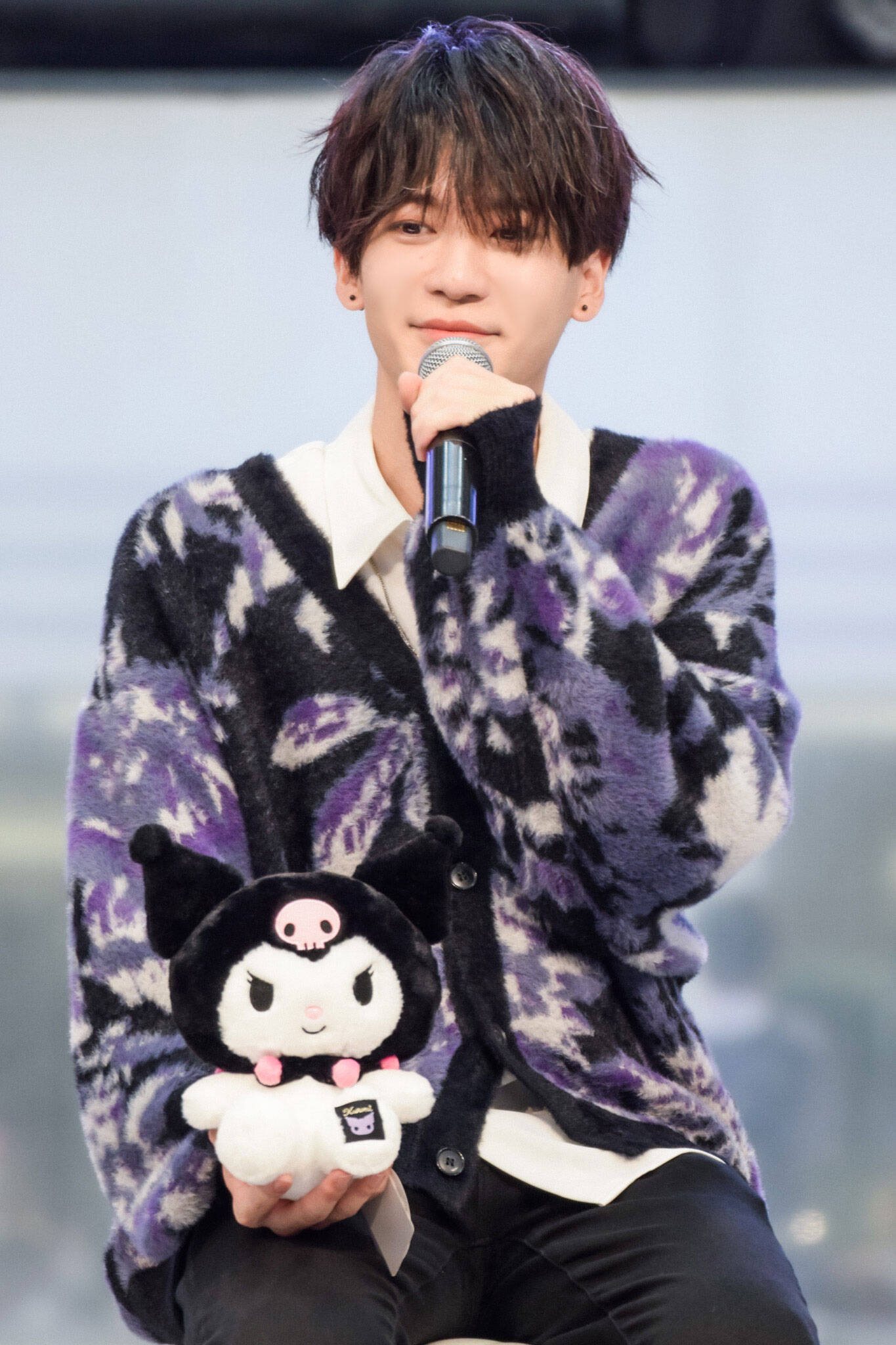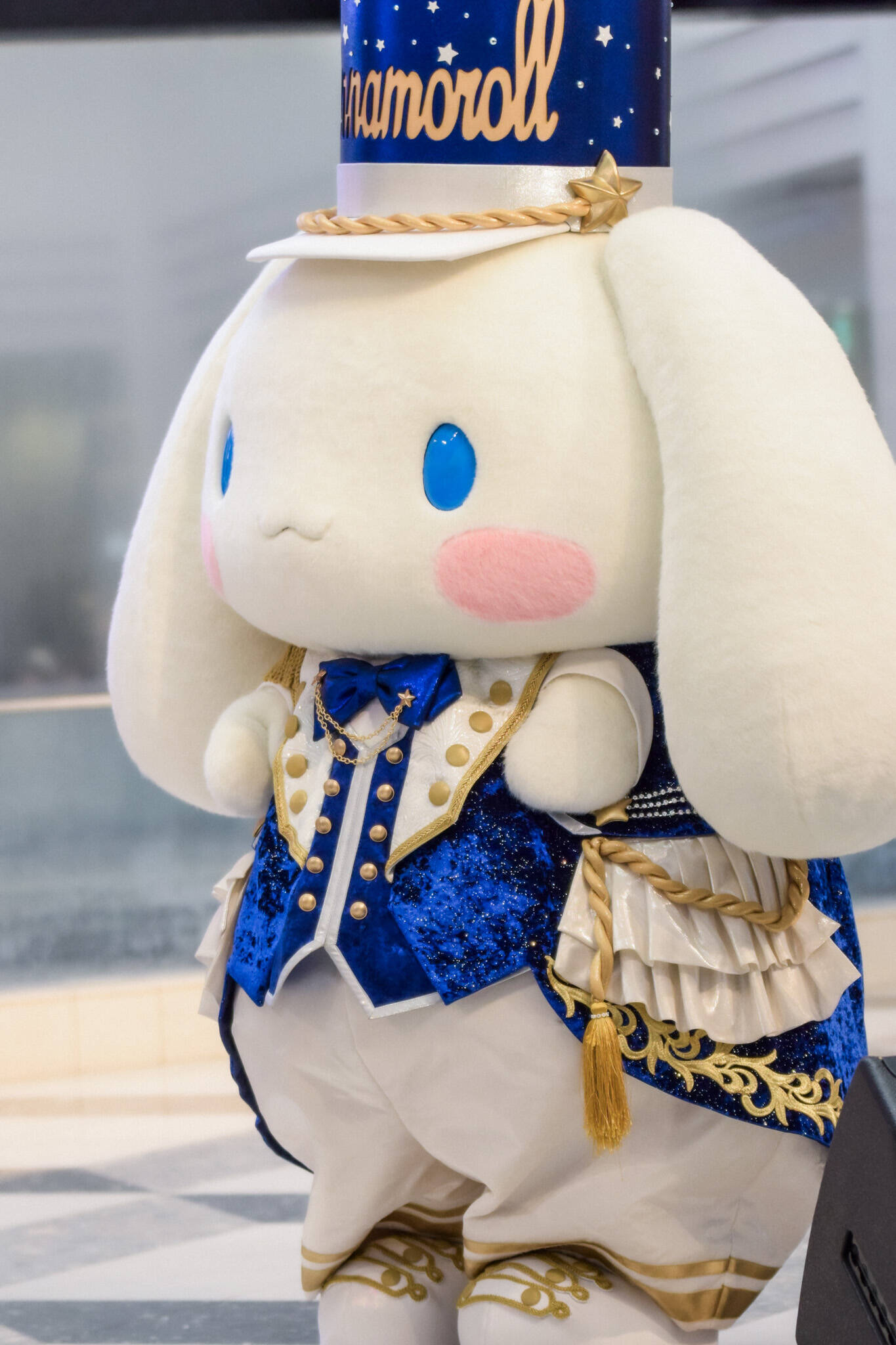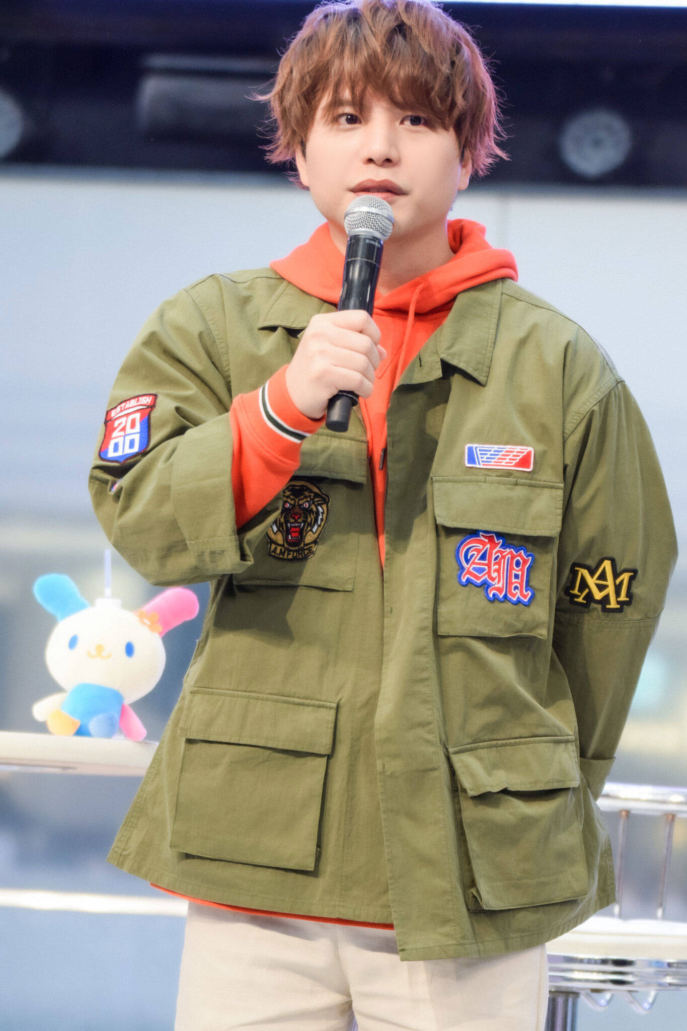 ここで、会場にスペシャルゲストが登場。「サンリオのイベントで男の人たちだけ見てるのもなと思いまして!(笑)こんな素敵な人を呼びました!」と呼びこまれたのは、ハローキティ、シナモロール、バッドばつ丸。2階、3階からステージを見守るファンへのファンサも欠かさない。