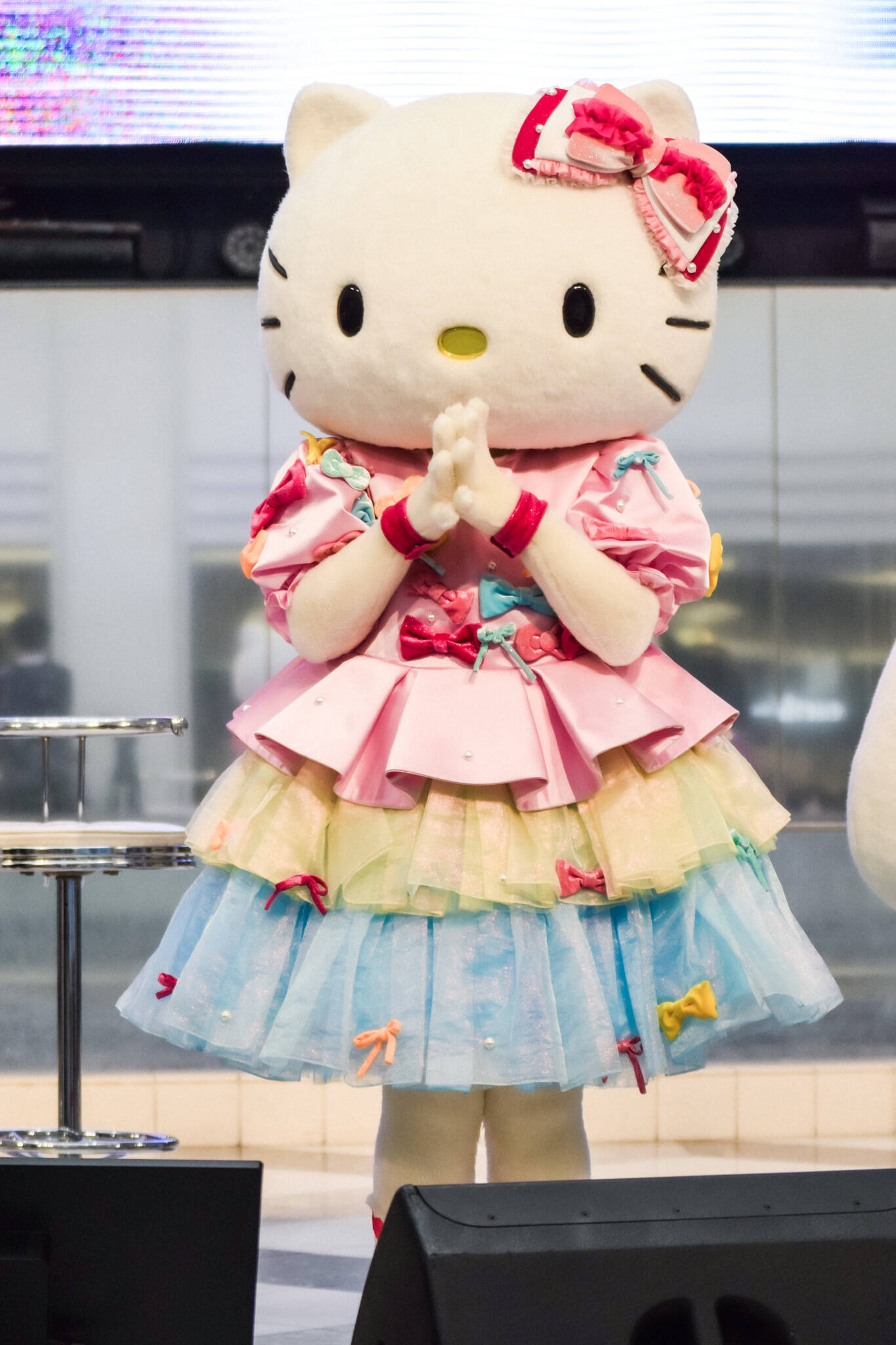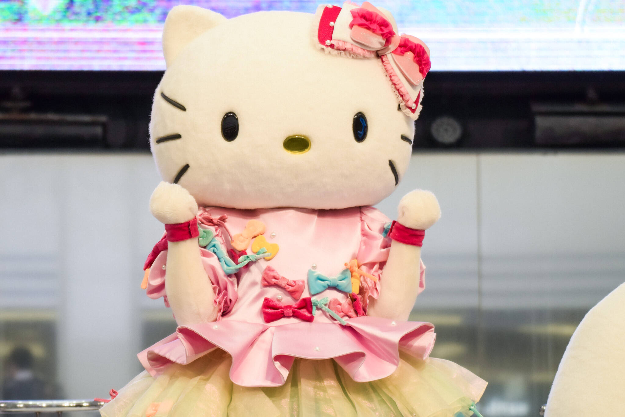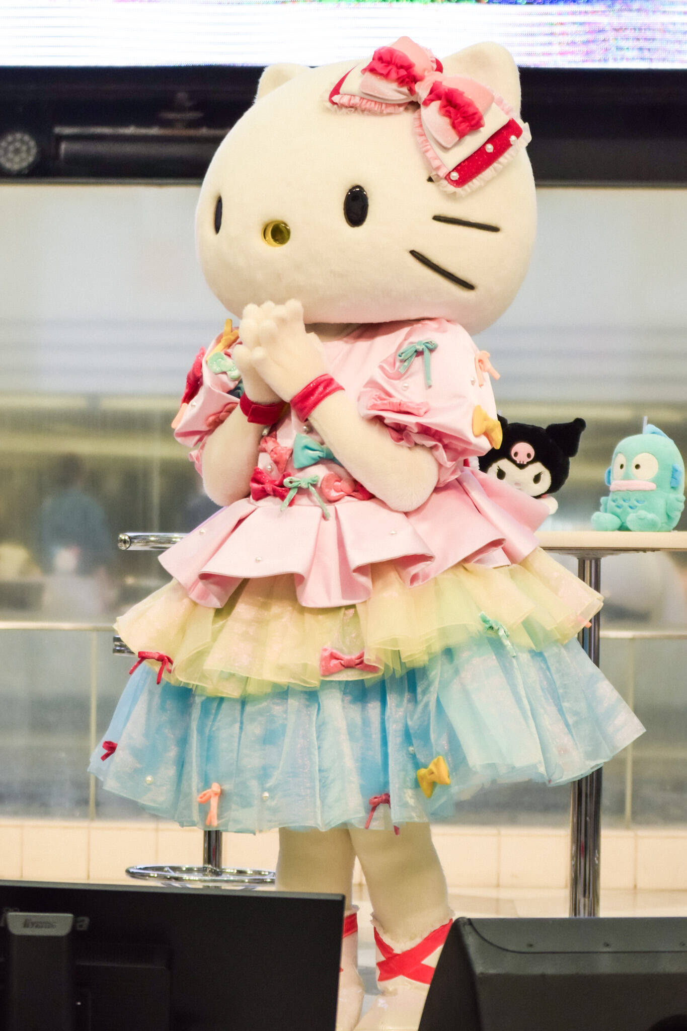楽曲がスクリーンに流れると、会場は大盛り上がり。ハローキティたちも音楽に合わせてかわいらしくダンス。