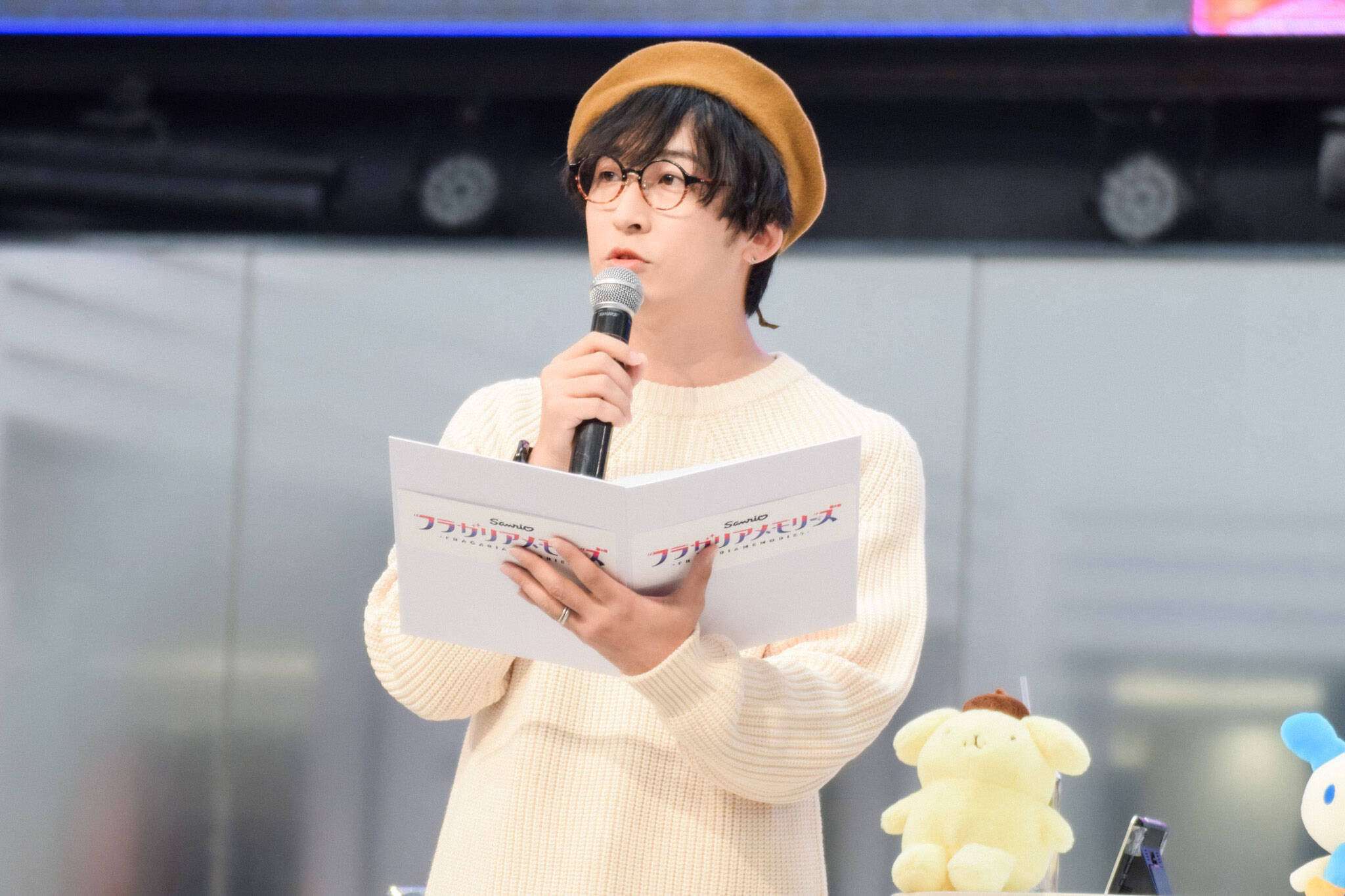 イベントの後半には、グッズ紹介のコーナーも。『フラガリアメモリーズ』のグッズ販売は、現在アニメイト池袋本店での販売とアニメイト通販での受注生産のみとなっているが、2024年1月より取扱店舗の拡大が決定。寺島の「お家にいるサンリオの仲間たちと並べてください」という言葉に、アクスタ・缶バッチ・クリアファイルなどを囲むハローキティたちも嬉しそうな仕草を見せた。