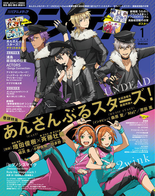 アニメ雑誌「アニメディア1月号」の詳細が解禁されました! 表紙は『あんさんぶるスターズ!』より、「UNDEAD」と「2wink」の2ユニットが登場! 裏表紙には『浦島坂田船の日常』が登場します。