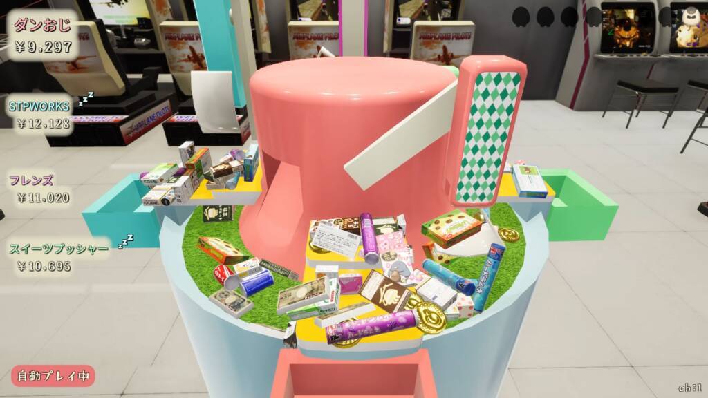 基本的な操作は流れてくる景品をすくい、自分の前にある「プッシャー」に落としてゲットするというシンプルなもの。1回すくうごとにお金を消費するが、箱に景品を落とせばお金を獲得できる。慎重に狙いを定めて無駄なく景品を手に入れていくのだ。