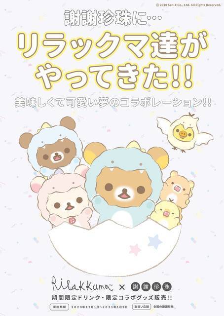 黒糖生タピオカ専門店「謝謝珍珠(シェイシェイパール)」とサンエックス株式会社の人気キャラクター「リラックマ」が、2020年12月1日~2021年1月3日の期間限定でコラボレーションドリンク・グッズの販売を行います。リラックマ×黒糖生タピオカ専門店『謝謝珍珠』