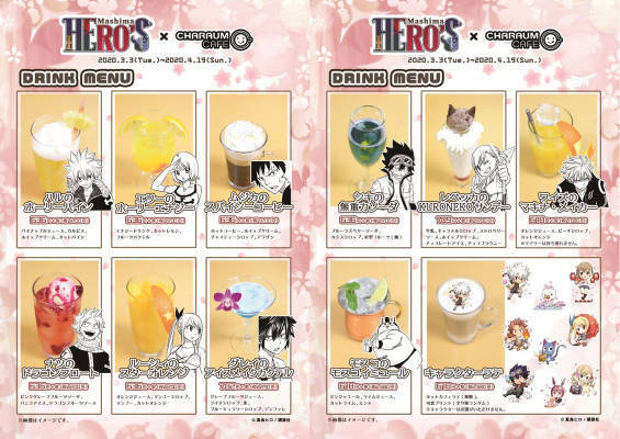 東京・池袋の「キャラウムカフェ」にて、週刊少年マガジン連載の『Mashima HERO'S』のコラボカフェが開催中です♪ 『RAVE』『FAIRY TAIL』『EDENS ZERO』の登場人物たちが、時空を超えて大集結した豪華タイトルのコラボメニューやオリジナルグッズなどが販売されています!週刊少年マガジン連載の『Mashima HERO'S』のコラボカフェが絶賛開催中です♪開催期間は2020年3月3日(火)から4月19日(日)まで!