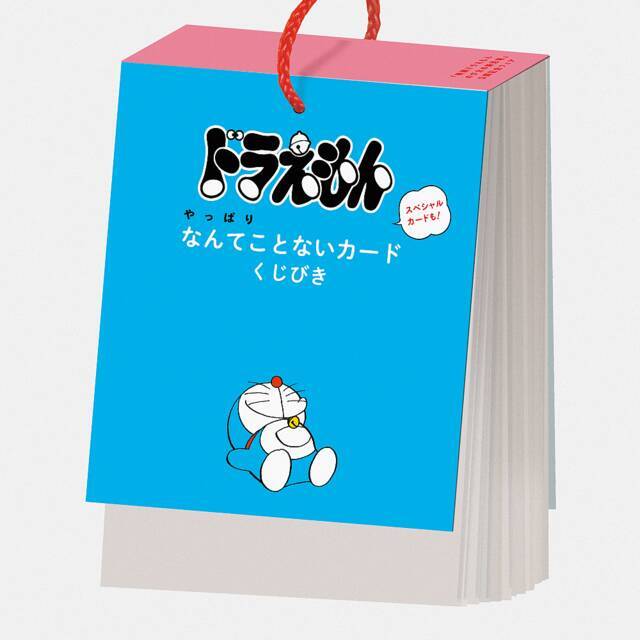 「なんてことないカード」は全部で12種類。『ドラえもん』の原作コミックから、ドラえもんの「なんてことない」けれどかわいい、面白い仕草のカットを厳選し、厚紙のダイカットカードになっています。