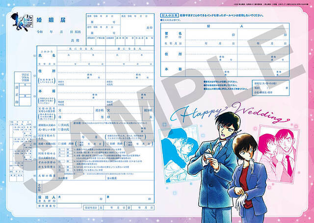 劇場版で大活躍の高木刑事と佐藤刑事のイラストが描かれた婚姻届をゲットすれば、あなたにも幸せが訪れるかも……?