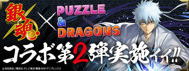 大人気アニメ『銀魂』と、大ヒットスマホアプリゲーム『パズル&ドラゴンズ』のコラボ第2弾が開催決定です! 「パズドラ」のガチャやダンジョンに銀魂キャらが多数登場します♪