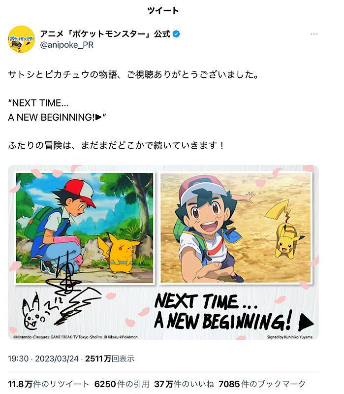 Twitterでは、粋な演出が涙を誘った最終回を振り返りながら多くのファンがサトシとの別れを惜しむ中、サトシの声優を務める松本梨香さんがサトシの“最後のセリフ”を収録した日のエピソードを語り反響を呼んでいるようです。