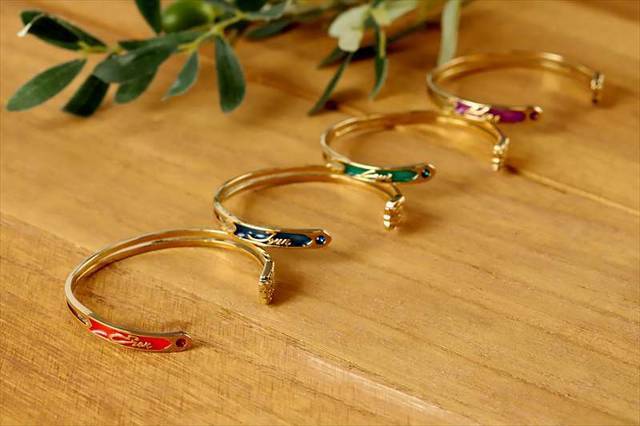 素材:ブロマイド:紙製/フルカラー印刷、バングル:真鍮、エポキ シ樹脂、金メッキ、スワロフスキー®・クリスタル