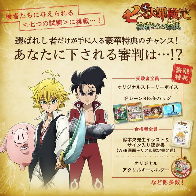 「七つの大罪検定」公式サイト:https://7-taizai.kentei-service.jp/「七つの大罪検定」公式Twitter:https://twitter.com/7_taizaikentei/