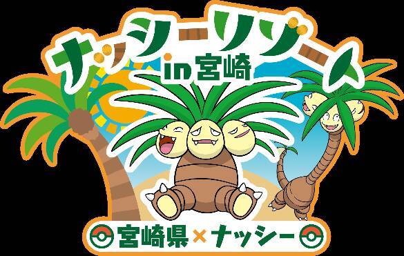 2020年10月、ナッシーとアローラナッシーは「宮崎だいすきポケモン」に任命されました。宮崎県の県の木にはヤシ科の「フェニックス」が制定されており、ヤシの木のような見た目で、「歩く熱帯雨林」と呼ばれるナッシーは、宮崎県のイメージにピッタリです。温暖な気候で一年中暖かく、「日本のひなた」とも呼ばれる宮崎県と相性バツグンのナッシーが、様々な取組で宮崎県を盛り上げていきます。ナッシーについて