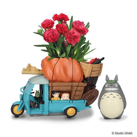 「となりのトトロ “オート三輪”とカーネーションセット」は、「草壁です!引っ越してきました!」と劇中のセリフが聞こえてきそうな、オート三輪での引っ越しのシーンをイメージ。