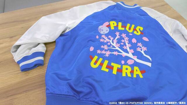 TOHO animationの10周年記念限定グッズの第2弾として販売される同商品は、劇場版『僕のヒーローアカデミア THE MOVIE ~2人の英雄~』にて若い頃のオールマイトが着ていたスカジャンをイメージ。背面の「PLUS ULTRA」の文字と桜は刺繍で再現され、リブの色や切り返しのサテン生地等、細部にまでこだわって作られています。