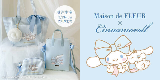 『シナモロール』が「Maison de FLEUR」とコラボ!淡いブルーカラーが可愛いトートバッグやポーチ、シナモンのしっぽモチーフのバスケースなど