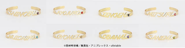 キャラクターの名前をデザインしたバングルです。イメージカラーのラインストーンもポイントとなっています。