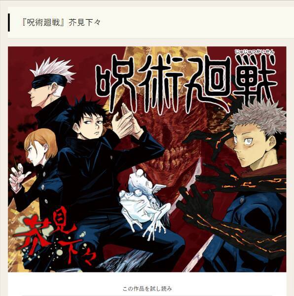 『呪術廻戦』集英社『週刊少年ジャンプ』公式サイトより
