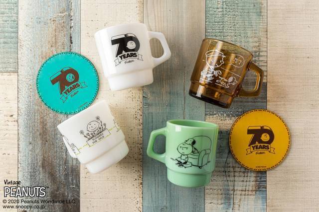 このたび、同じアメリカ生まれの人気コミック「PEANUTS」の生誕70周年をお祝いして、Fire-King より4つのスタッキングマグが登場です。